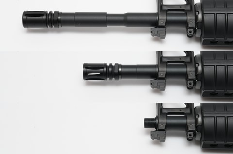 パッケージには本体とマガジンに加え、延長アウター11.5インチバレル、マガジンアダプター、アッパーフレームとロアフレームの内部メカを保護するレシーバーカバーなどが同梱。出荷時には14.5インチ仕様のアウターバレルが装着されているが、付属の11.5インチ仕様アウターバレルに付け替えもできるので、好みやプレイスタイルに応じたバレル長を選べる。