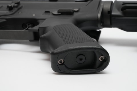 デザイン上特徴的なのが、マガジンハウジングが無地であること。外装カスタム後に好みのロゴや刻印を追加したいユーザーにとって、カスタムベースとしての自由度は高いといえる。また、レシーバーには耐擦過性に優れたセラコートを採用。グリップは強化樹脂を用いて薄さと耐久性の両立を狙い、あえて無塗装にすることで本物のような質感を再現している。
