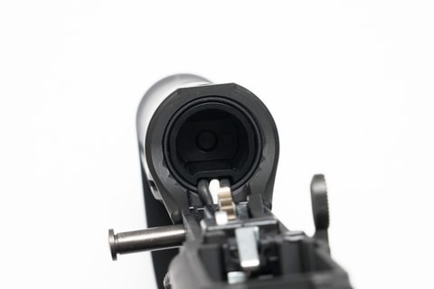 その具体的な効果について詳細な説明はないが、銃身長229mmのインナーバレルに最適化したエア容量の小径シリンダーとすることで振動や打撃音を低減し、安定作動や耐久性を向上。さらに、エア噴出量を安定化させることで初速のバラつきを抑え、ひいては命中精度の向上も狙った設計だと考えられる。