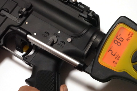 トリガープルについては最大2.91kg、平均2.85kg、最小2.8kgとなった。電動ガンとしては比較的トリガープルが重めといえる。ただ、個人的には重めのトリガーのほうが好きなので、あまり気にならなかった。