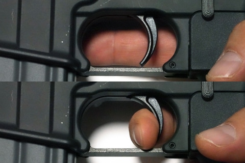 つまり撃った直後はチャンバー内にBB弾は装填されていない。その状態でマガジンを抜けば、トリガーを引いても空撃ちとなる。マガジンさえ抜いていればBB弾が発射されることはないというのは、非常に安心感が高い。とはいえゲーム終了後は、周囲に弾抜きをしていないと誤解されないためにも、フィールドを出る前に所定の場所で空撃ちするべきだ。