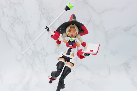 2024年発売の「SIS-F00 ユフィア」に続く、イラストレーターのBUNBUN氏がデザインを手がけるシスターは、杖と魔導書を携えたファンタジーテイストあふれる魔女っ子スタイル。クリアパーツをあしらったとんがり帽子に三つ編みヘア、パンツルックという、デザインの個性が強調されている。