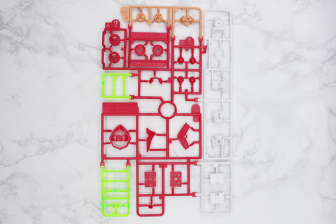 パーツはクリアグリーンのパーツを装備のワンポイントとして採用。手足のリングは白で目立たない配色で、アームドモードがないことなどからジョイント付きのものは使わず余剰パーツとなる。