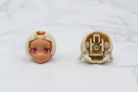 組み立ては頭部から。口を開けた2つのフェイスパーツはユフィアと同様に歯のパーツを採用し、「SIS-K00 ミコルル」に続く八重歯風の歯となっている。もちろん歯のパーツは使わずに組み立てることも可能だ。