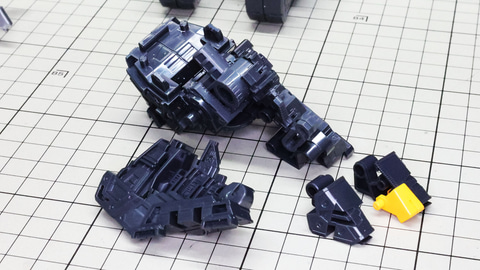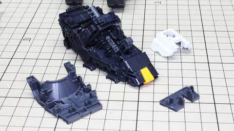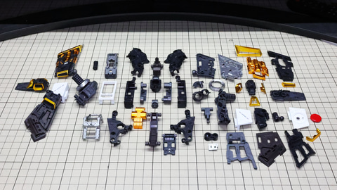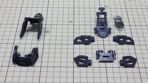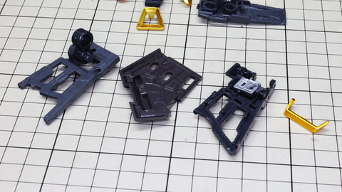 そしてランナーをじっくり見ていくとそれほど複雑な構造ではなさそうにも感じます。実際にはパズルや知恵の輪みたいな複雑な組立はあまりなく、それぞれのパーツも大きいため取り扱いにもそれほど気を使わなくて済むようです。ただ単純に大きなパーツがいっぱいある、といった印象でしょうか。では、いってみましょう!
