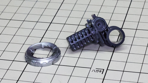 巨体を支えるためにかなり太い軸で、摩擦係数も高いですからじんわり押し込んだり回転させながら組みます ここだけでもこのキットの特別感を感じられると思います このシールはとても細かいものがあるので注意しながら取り扱います 続いて膝とふくらはぎが繋がるメカフレームを組んでいきます 複雑な関節構造に見えますが、とてもシンプルに構成されています こちらはふくらはぎの推進機周りの構造です。金属パーツによるノズルがとてもいいアクセントになります 金属のノズルの中にもクリアーパーツが配置され、独特のディテールを魅せてくれます 膝とふくらはぎのメカパーツをドッキングさせていきます それはノズルの中の軸にも!ゲート跡を隠す効果もあります メカフレームにホワイトやゴールドの装飾を兼ねるパーツも組み込まれます 一部のパーツは可動することで完成後にパネルオープンが可能になります 脛やアキレス腱部をカバーするメカフレームを組んでいきます。ここは大きく可動する構造になっています 大腿部を組んでいきます。中央に走るシリンダーのパーツが劇中を彷彿とさせます シリンダーケース裏には可動軸を持つパイピングディテールがあります。これはおもしろい構造ですね こちらもνガンダムの特徴である膝裏のメッシュパイプはパーツで実現されます。すごいディテールなのに組みやすい! 写真右側が股関節側です。金属色のシリンダーディテールが楽しい! 左右のパーツを取り付けてメカフレームが完成しますが、こんなにディテール満載なのにトリッキーな組立はありませんでした ここでパイピングを行っていきます。機体外側にレッド、内側にブルーのリード線が使われます 表側にシルバー、裏側にホワイトのサブフレームも取り付けます エッチングシールはシャープで薄いので折れ曲がり等に注意して貼りこみます。一気にリアリティが増す瞬間です! ソールを組んでいきます。多数のパーツで構成されているのがわかります くるぶしにあたる部分は荷重を受ける部分なので大きい軸で構成されます エッチングシールでディテールを表現しますが中のディテールが隠れてしまいます。これを知っているのは組んだ者のみの特権! さらにホワイトの装飾パーツを取り付けて完全に隠れます かかとの部分を組みます。展開するツメも組み込まれます くるぶし部との接続軸を組みます。太くてがっちり固定されます かかとと足の甲部分のメカフレームができてきました。複雑に絡み合う構造に注目です ソール裏は別パーツ化されていてカラーも違うことで情報量が増すとともに楽しい仕上がりになります つま先部を組んでいきます。こちらにも展開するツメがあります 足の甲、つま先部のカバーパーツを取り付けていきます 大きさとディテールによって重厚感のあるソールになってきました ここにもパイピングを施します。左右を間違えないように! またしてもほぼ見えなくなりますがこれがロマンというものですね ソール裏の金属製ノズルとクリアーパーツによる表現! 可動機構をチェックしてみましょう。特にソールのかかと部の動きが独特な感じです つま先とソールの前後で可動します。ノズルはかかと部に固定されているのがわかります ここまでで組み上がった各部をドッキングさせていきます 膝アーマー内のシルバーのディテールは2パーツで構成されます さらに膝関節部のメカフレームに組み込みました。これは膝関節部を引き延ばした状態です さらに大腿部と組み合わせます。連動可動するシリンダー軸の組立がやっかいなので、一旦シリンダーケース側を分解するほうがやりやすかったです 各部を定位置に戻すとこの通り。このメカニカル感!かっこよすぎです 膝関節部の左右にはゴールドのパーツが取り付けられます 手で持ってみると片側だけでもずっしりと、そして剛性の高さを感じます 各可動部はぐにゅうっと可動します。ヘタる様子はみじんも感じられません 組み上がった両脚を接続し、上半身とドッキングして本体を支える重要な部位が腰部です。このキットでも剛性感のあるがっちりとした設計になっています。さらに腰部全体はぐぅーっと変形させることができ脚部が接続できる関節は大きく振り出す機構も持っていてここにこそガンプラの技術が凝縮されているようにも感じられます。