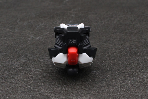 胴体は首のパーツが前後にスイングする構造で、頭部の可動を補っている。肩の装甲は固定に球状のポリキャップを使うちょっと変わった設計で、これにより腕の付け根部分をわずかに動かすことが可能だ。胴体は白いガンダムの色分け用にパーツが分割された構造となるが、この01ガンダムは色数が少なく、遠目にはわかりづらいものの、よく見るとパーツ分割によるディテールが細部まで表現された通好みの設計となっている。