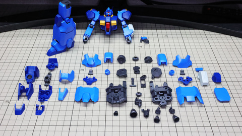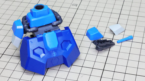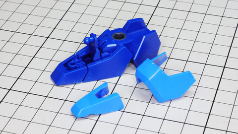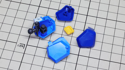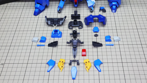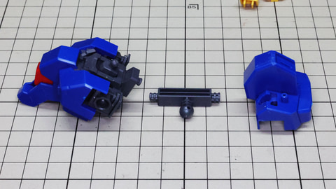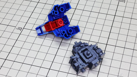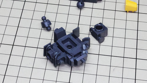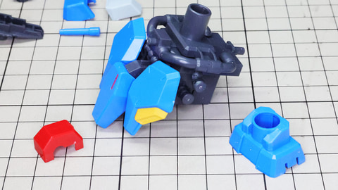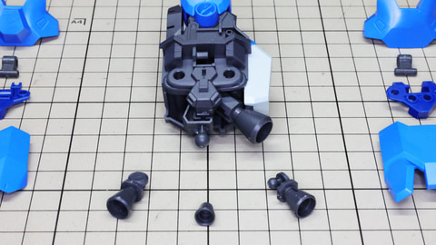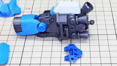 それでは早速組んでいきましょう!まずは胴体部からです。各部も大きく組みやすい印象で、特に肩部の関節は大きく引き出すことができアクションに貢献します。同時にバックパックも組みますが、ここに付くと思われたアームは背面にある軸受けを使います。