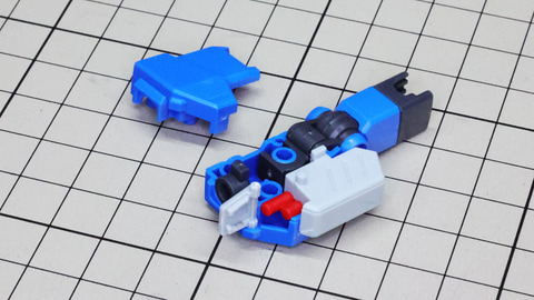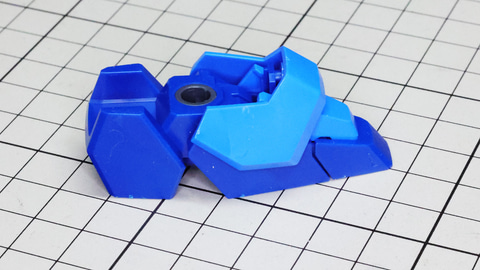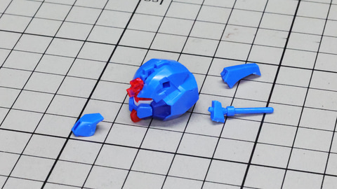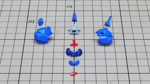 コックピット部の赤いパーツを装甲の裏から取り付けて胴体部を組み上げていきます 腹部のボールジョイントは前後装甲部を一本でつなぐ大胆な構造です シンプルながら綺麗な面取りの胴体装甲!パネルラインのスジボリを入れるのにも最適 バックパックは本体左右からカバーを被せる構造で、ゲート跡を隠してディテールも上げてくれる嬉しい設計! バックパックには3基のノズルがあります。ボールジョイントの構造と設計が面白いです 次に頭部を組んでいきましょう。こちらもカラーごとに細かくパーツ分けがされています。センサー部にはシールでのメカニカルな表現とクリアーパーツによる多層構造で深みのあるディテールを作り出します。