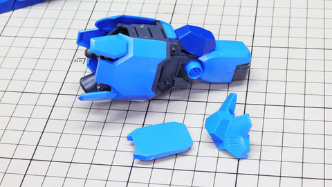 左右ヘルメットは大きく、メカフレームは細かく設計されています メカフレームにセンサーを表現するシールを貼ってクリアーパーツで保護します シールを使わず塗装での表現にチャレンジするのも面白そう! 左右からヘルメットとアンテナ類を取り付けていきます 腕部を組みます。こちらは標準的なHGクラスのパーツ分割となっています。肘はもちろん二重関節となっていますが、左右の前腕部に違いがあります。