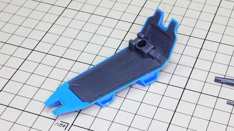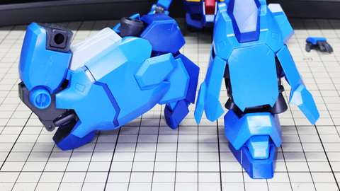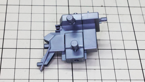 すごいパーツ数……これが片脚分です!左にソール、中央から右が脚部本体です ソールから組んでいきます。ソールは前後に3分割されます アキレス腱部の推進機と足首のメカフレームを組みます 膝下の大きなメカフレームに各部を組み込んでいきます 見た目に反してとても可動性能が高いことがわかります 脛下側部の装甲が開きます。ソール裏にもノズルのディテールがあります 腰部も大きなメカフレームをメインに、大胆なパーツ分けでありつつクラスを超えた組み応えを感じさせてくれる部分です。左右の装甲にはビーム・サーベルを収められるようになっています。後部の大きな装甲は迫力のある大型パーツで構成され、前部の装甲は加飾のためのパーツと装甲パーツでディテールを再現しています。