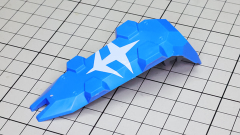 大きなメカフレームとカラー/ディテール再現のために細かくも大胆に分けられたパーツ群 前側の加飾装甲にはシールでのディテーリングが行われます フロントアーマーには加飾も兼ねたパーツで可動部を表現します HGフォーマットでフロントアーマーは左右分割できます フロントの加飾部、上半身との接続に使われる腹部のパーツを取り付けます リアアーマーは大きなメカフレームと装甲パーツで実現されます 脚部と上半身をドッキング!グスタフ・カール本体の完成です 装備を組んでいきます。装備はビーム・ライフル、バズーカ、シールド、ビーム・サーベルとなっています。各装備はパーツ数も少なく、組み合わせるだけですので難しくはありません。シールドには大きな地球連邦軍のマークをシールで貼り付ける工程がありますが、大きいシールはそれはそれで難しいところもありますからここはじっくり取り組みましょう。