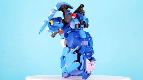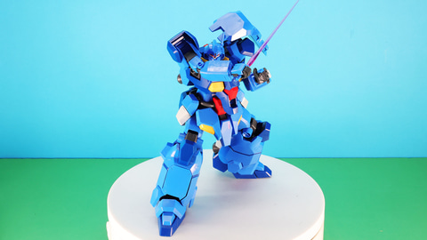 ここまで「HG 1/144 グスタフ・カール00型」いかがだったでしょうか。大型のモビルスーツをHGクラスを超える設計で余すところなく表現していて組んで楽しくなるキットでした。特に脚部を構成する多数のパーツと膝関節のシリンダーディテールを盛り込んだ引き出し式関節の構造が面白く、ポージングの自由度を与えてくれました。