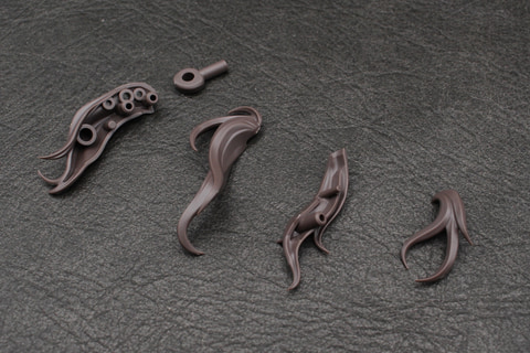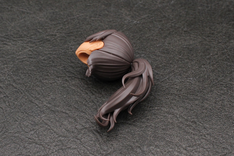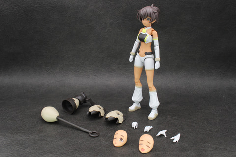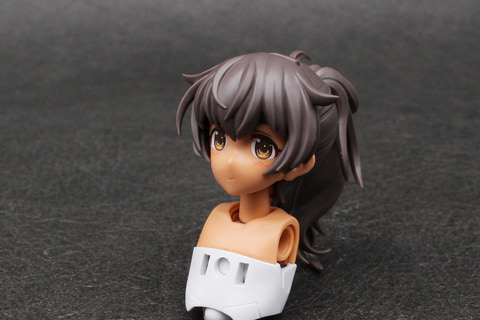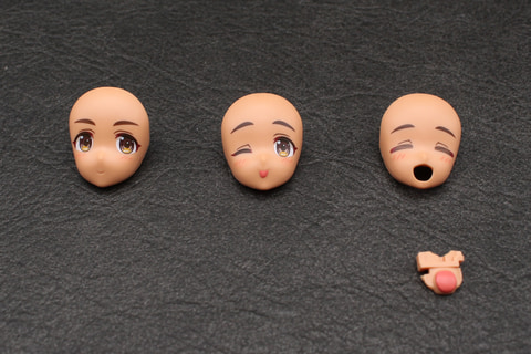 組み立ては頭部からスタート。表情パーツは、初代ルルチェが少しおとなしめの表情だったのに対し、このリリーウエア版は彼女の愛らしさにあふれた表情が揃っている。舌を出してウインクをしたいわゆる“てへぺろ”表情のフェイスパーツは、1パーツではあるものの、幅1.5mmほどの舌の部分が立体的に造形され塗装も施されており、造形と塗装両方の技術が注ぎ込まれている。ヘアスタイルも同じポニーテールでも束ねた髪のパーツが増えていて、ボリュームアップしている。