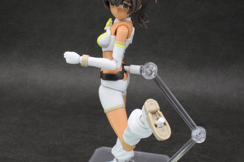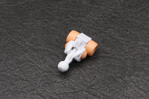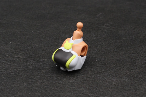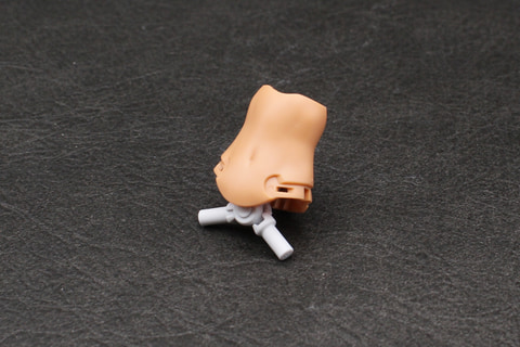 胴体はウエスト周りが大胆に露出したセパレートビキニのようなスタイル。そのウエストのパーツは1パーツ成形かつパーティングラインも目立たないハイクオリティなパーツとなっている。股関節は上側のボールが半球状で、腹部のジョイントに前後逆向きに差し込んで半回転させることで内部でロックがかかって抜けなくなる仕組み。また、パンツはウエストに差し込んで、左右の黒い飾りパーツを取り付けると抜けなくなるなど、組み立てにおける構造もよく考えられている。