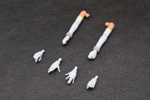 腕はリシェッタ(フリージアウエア)やティアーシャ(ダリアウエア)と同じ、上腕にリングを2つ装備したシンプルな構造。手首は従来通り左右3種類ずつとなる。