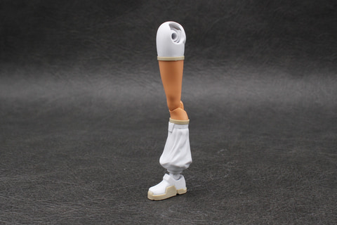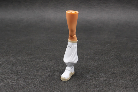 脚は今回のルルチェのトレードマークとも言える、ルーズソックス風のレッグウォーマーが脛部分となる。構造自体はシンプルだが、たわんだ布のような質感が表現されている。足首にはリシェッタ(フリージアウエア)と同様、折り畳み式のジョイントが内蔵されていて、3mm穴のあるアクションベースやオプションパーツに対応している。