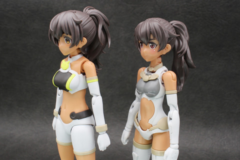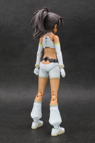 身体の各パーツが完成したら組み付けてノーマルモードの完成。身長は初代ルルチェと5mmほどしか変わらないが、体格は全体的にグラマラスになった印象。ウエストの部分もただ露出しているだけでなく、背中側に骨格を意識した凹凸があるなど、造形も凝っている。ビキニスタイルで脛の部分が膨らんだコスチュームのため、先日発表された「30MS SIS-E00 ミャスティ[カラーC]」にも似たエキゾチックな雰囲気も備えている。