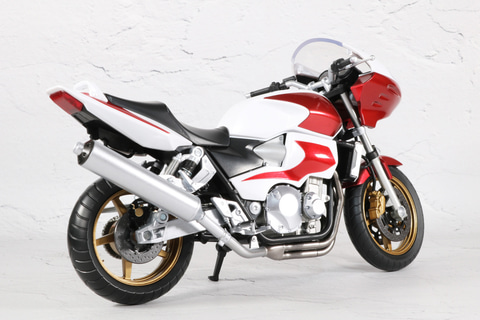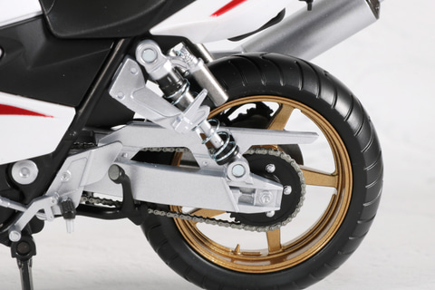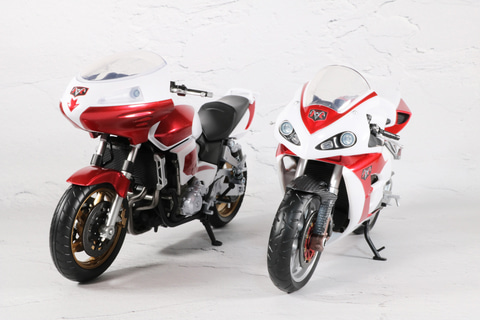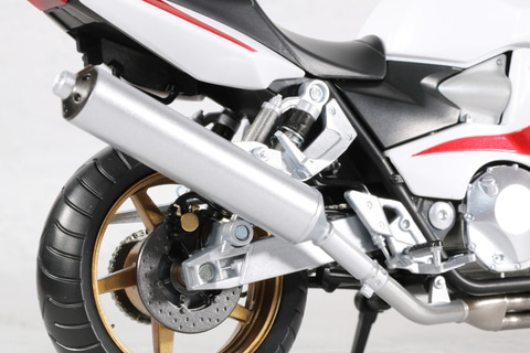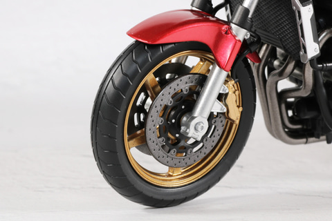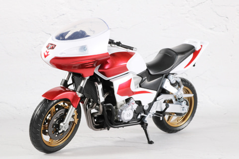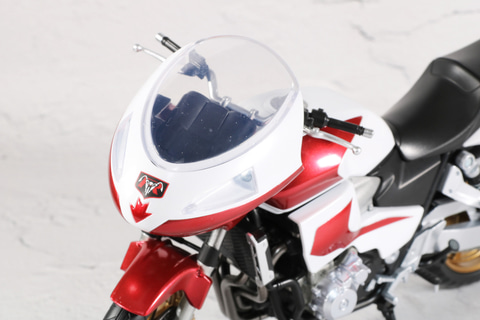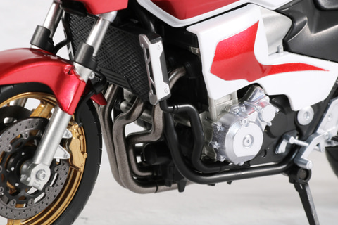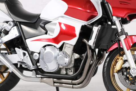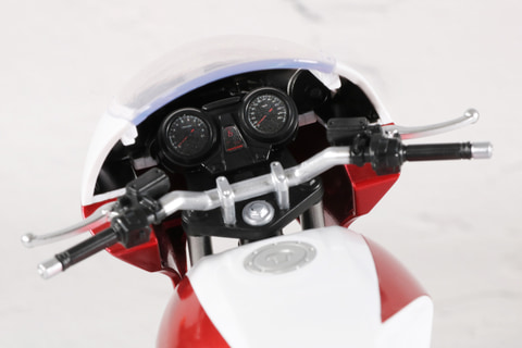 タンクやボディのメタリックレッド塗装やタイヤのゴールドといった、重厚感あるカラーリングとなっている。ボディのエンジンやマフラーなどのメカ造形も緻密に表現されている。