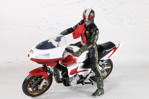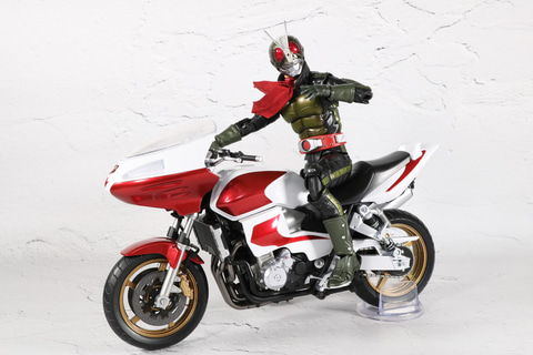 そして、「S.H.Figuarts(真骨彫製法) 仮面ライダー2号/一文字隼人(仮面ライダーTHE NEXT)」と合わせることでライディングスタイルを再現することができる。