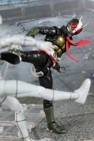 そして、ボーナスパーツの仮面ライダー2号/一文字隼人(仮面ライダーTHE NEXT)用手持ち用マスクによって印象的なシーンの再現も楽しめる。劇中ではマスクとクラッシャーを装着するのが特徴的で、戦いに臨む瞬間や戦いを終えてマスクを取るシーンなどメリハリのあるドラマが展開されている。