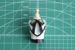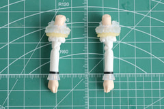 今回は髪飾りありの前髪パーツのヘアピンと髪飾りの一部をシルバーで塗装してみた。非常に細かい部分だが正面から見た時の印象の違いが表れ、よりイメージに近い造形となる。