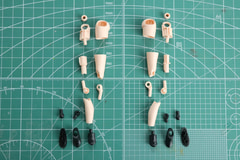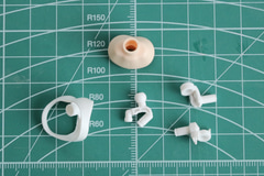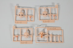 タンポ印刷済み表情パーツ3種はそれぞれ口元が別パーツとなっている。口は塗装済みパーツとなっており、組み立てるだけでイメージに近い色分けが可能となっている。