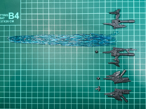 本キットに付属するレーザードローンは発売中の「30MM オプションパーツセット ARMORED CORE VI FIRES OF RUBICON WEAPON SET 01」に付属するものと同一形状です。発売中のパーツとは装備位置が異なり、本キットに付属するレーザードローンは左肩装備用となります。