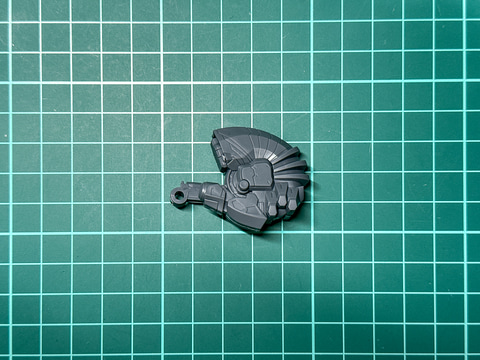 右肩部武装の拡散バズーカは「30MM ARMORED CORE VI FIRES OF RUBICON RaD CC-3000 WRECKER ミルクトゥース」の左肩に装備したものと左右対称形状です。銃身はミルクトゥースのものと共通ですが側面板の形状は左右で反転しています。
