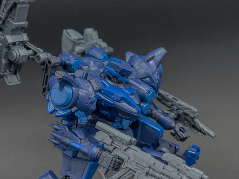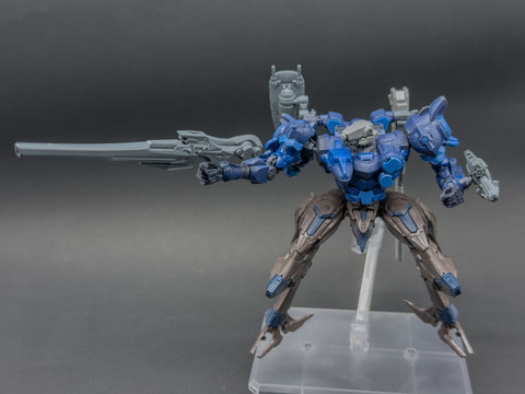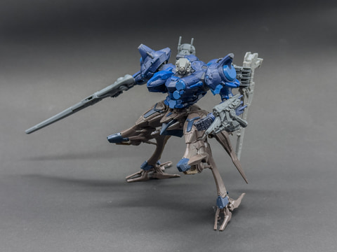 ここからはロックスミスをメインに、発売中のキットと組み合わせたアセンブル例を紹介します。まずは脚部をスティールヘイズの軽量二脚へ変更し、全体的に軽量にまとめた高速型ACです。武装も小型のものに変更しています。
