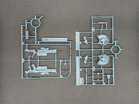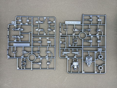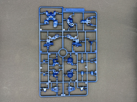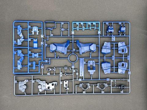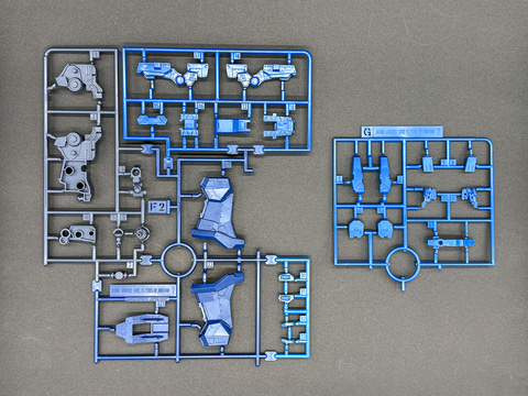頭部、脚部など一部パーツは既存キットと同型の機体なので、新規造形ランナーは7枚です。各ランナーは余剰パーツが極力発生しないよう、形状が工夫されています。