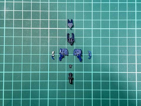 頭部パーツの構造は発売中の「30MM ARMORED CORE VI FIRES OF RUBICON BALAM INDUSTRIES BD-011 MELANDER」と同型です。このキットでの成形色は、ブルーを基調としたカラーリングに変更されています。