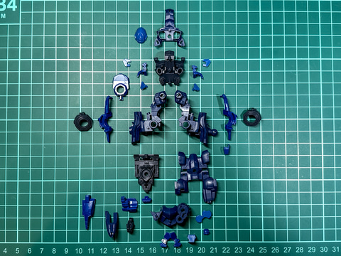 本キットのコアパーツは胸部が左右非対称のデザインで、パーツの色分けも細かく設定されています。そのため、パーツ分割もこれまでのシリーズキットの中でも最多のパーツ数です。