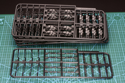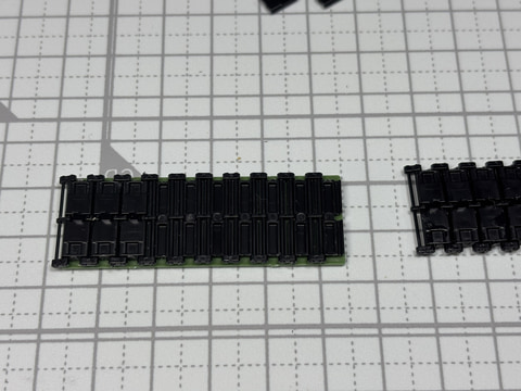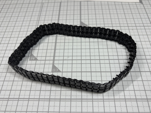 そして1つのクライマックスといえる履帯の組み立てだ。履帯は上下と連結パーツの3パーツで構成されている。専用の治具も用意されているが、非常に細かい。「1/35 STRIDSVAGN 103C(S-タンクC型)」では片側62コマ、合計で124コマの履帯を作らねばならない。最後の前後の履帯をつなげて輪にする組み立ても少し苦労する部分があるが、それでも高い達成感を味わえる。