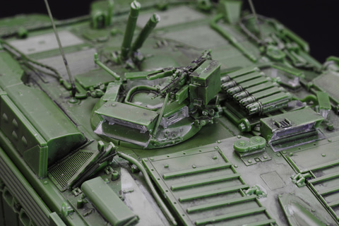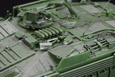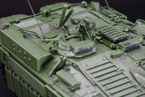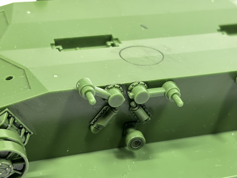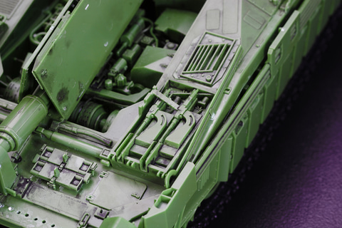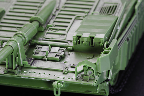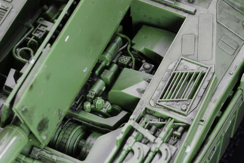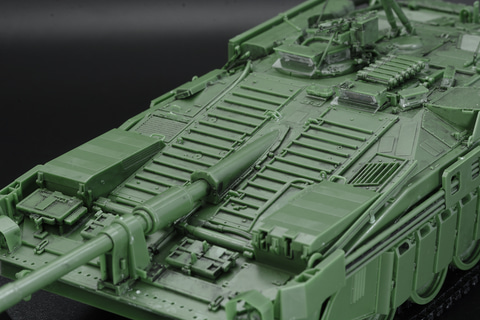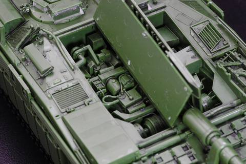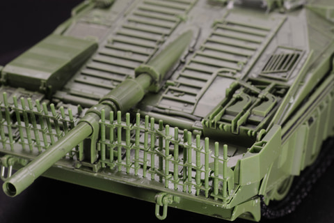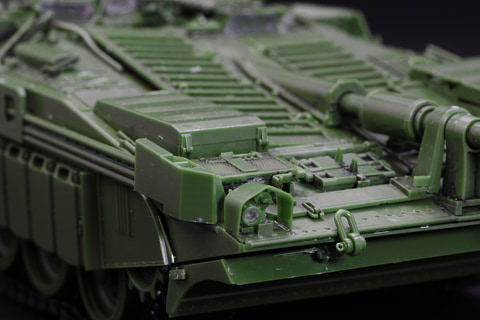 しかもそれだけでない、エンジンハッチ開放、ドライバーズハッチ開閉、さらにはHEAT弾防御用の「柵アーマー」の取り付け、ドーザーブレード展開など、"遊べる"プラモデルなのだ。