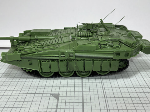 主砲、側面装備、ドーザーブレードを取り付け、完成