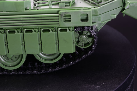 車体側面は転輪を隠すようにサイドスカートが装備される。この側面のスカートにも燃料が入り、予備燃料タンクとして機能する。燃料を入れてあるのだが、補助装甲としての機能も持たせている。