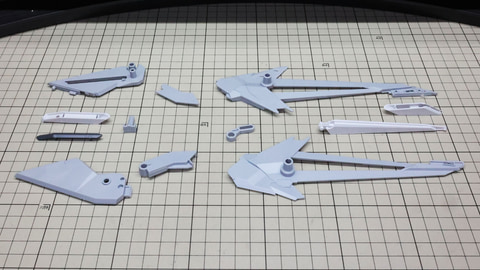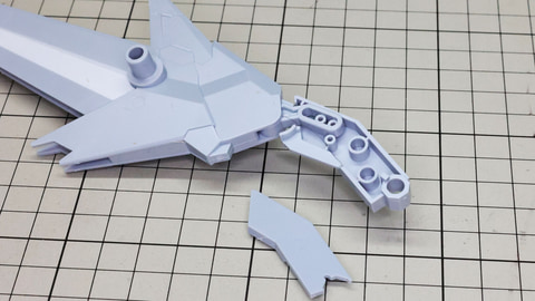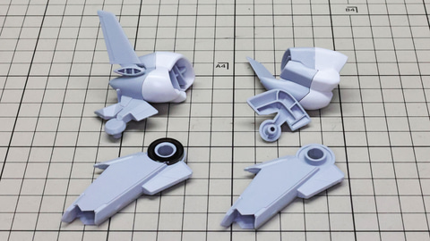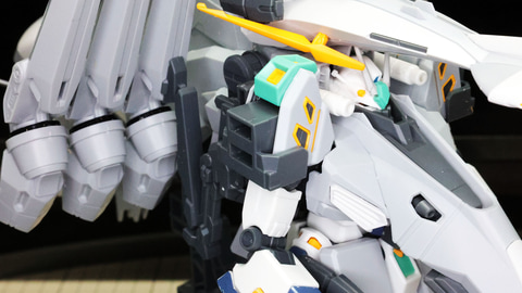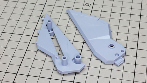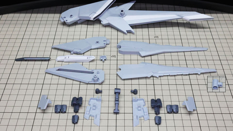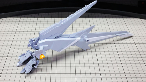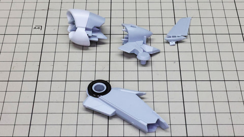 テール・スタビライザーにカラーパーツを取り付けていきます。先端のパーツはコの字の1パーツですが薄いので割らないように注意しましょう 左右に位置する推進機を組みます。こちらにも伸縮する機構があります さらに上部に位置する別のスタビライザー、推進機と量産型νガンダムのリアアーマーの部分に来るミサイル内蔵の装甲を組んでいきます リアアーマーはミサイルが露出している状態になります アリュゼウスのスタビライザーには推進機が装備されています パーツは左右での組み合わせがほとんどですが形状が特殊なのでどこがどこに取り付けられるか、よく観察しましょう! この推進機にはウイングが取り付けられます。高い整流効果を感じそうでまさにスタビライザーです スタビライザーの根元にノズル部を取り付けて完成です 機首(便宜的にそう記述しました)を組んでいきます。ここもスタビライザーと同様にペーネロペーとの共通点を感じる部分です。機首の上下にクリアーパーツによるセンサー表現、パーツ分けによるカラー再現など見どころたくさんです。単純な直線ではないパーツなので取り付けがきっちりうまくいっているかよく確認しながら進めていきたいところです