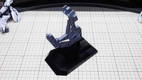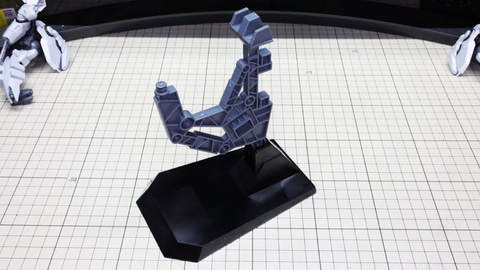 大型の機体用にがっちりしたアームが用意されたディスプレイベースのパーツ群 アリュゼウス組立の最終段階に移ります。これは量産型νガンダムのバックパック側面に取り付けるアタッチメントです ここにテール・スタビライザーや腕部なども取り付けられます 股関節とスタビライザーの推進機でディスプレイベースに接続されて安定性も高いです 量産型νガンダムのアンテナをよく確認しながら機首を取り付けます 背面のシェルフ・ノズルも量産型νガンダムのバックパックのサイドにアームを接続します。ここに繋がっているからあのシーンができるのですね! 腕部は量産型νガンダムの反り上がった肩アーマーの内側とバックパックのアタッチメントの2か所に接続します