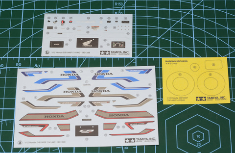 「1/12 Honda CB1000F」には実車のCB1000F同様3つのカラーパターンがスライドマークで再現されている。今回は青いラインがカッコイイ「ブルーストライプ」にしてみた。