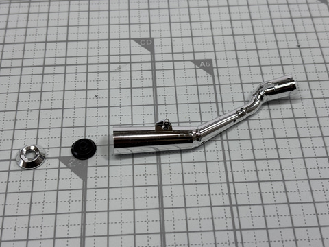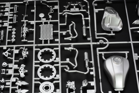 色分けされたパーツ、マフラーのメッキ、ネジなどの金属パーツも使用