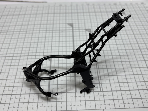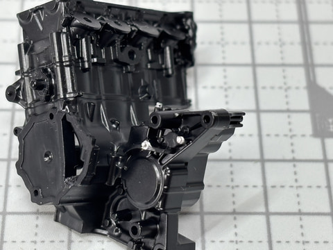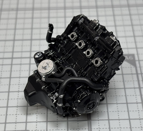 ここにさらにCB1000Fの黒いエンジンを引き立てる銀色の金具が使用されている雰囲気を再現するため、筆塗りでシルバーを加えた。このちょっとした工夫で質感が向上すると感じた。早速組み立てていこう。