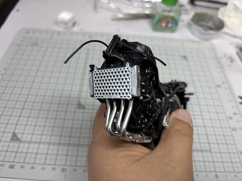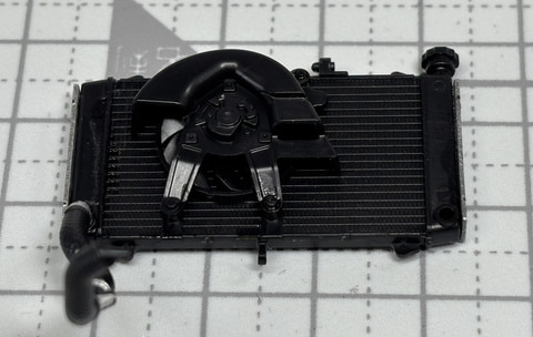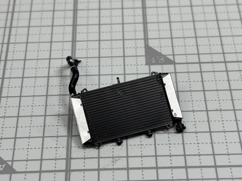組み立てにおいてラジエーターも銀の塗装が非常に映えるところ。銀で塗っておくことでシャープな雰囲気が増す。。