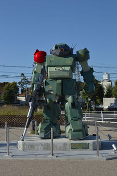 モニュメントのモチーフとなっているのは「装甲騎兵ボトムズ」の主役メカ「スコープドッグ」。稲城市はメカデザイナーの大河原邦男氏が現在も住んでいる"地元"として、「メカニックデザイナー大河原邦男プロジェクト」を発足、「ATM-09-ST スコープドッグの実物大モニュメント」もその一環となる。このモニュメントは2020年3月15日に設置され、「ボトムズ」ファンの"聖地"となった。
