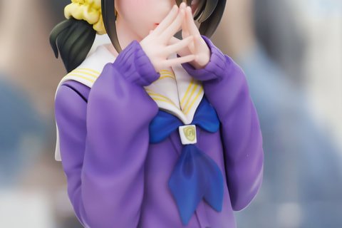 ことのが身に付けている衣装は、アニメで描かれていた中学校の制服姿をそのままに再現している。やや大きめに見える紫色のセーターは、華奢なボディを強調させているようだ。絶妙なシワなどの質感の違いもよく出ており、フィギュアならではのリアルさも出ている。