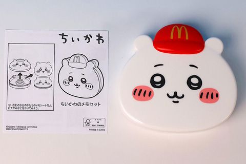 こちらの「ちいかわのメモセット」は、マクドナルドクルーになったちいかわの顔が描かれたケースだ。中身には、これまたちいかわの顔が描かれたメモが入れられている。ケースの内側はエンボスで絵が描かれており、えんぴつなどでこすることで浮かび上がらせることができる。