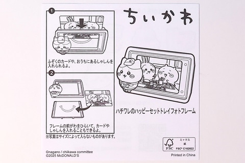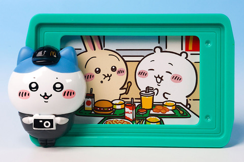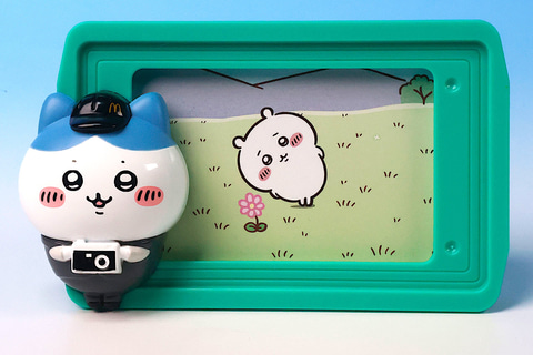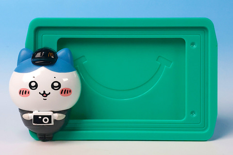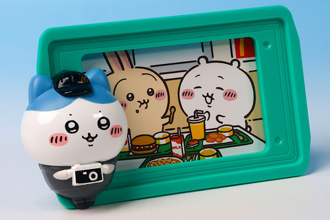 こちらの「ハチワレのハッピーセットフォトフレーム」は、緑色のトレイ部分にハチワレが付けられたミニサイズのフォトフレームだ。楽しそうに食事を楽しんでいるシーンを、ハチワレが記念撮影してるような姿になっており、このままの状態で飾っておいても良さそうである。