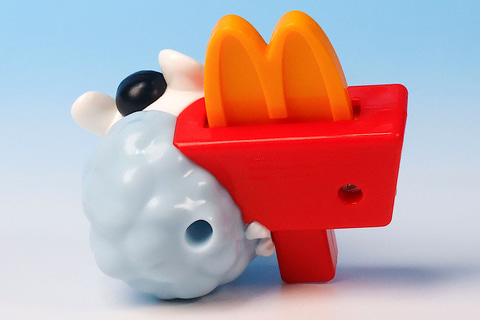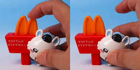 こちらの「モモンガのボールサイン えんぴつキャップ」は、マクドナルドのポールサインにしがみつくモモンガの姿をモチーフにしたペンシルキャップだ。キャップとして使える鉛筆のサイズが限られているので、ちょうどいい物を見つけて取り付けてみよう。これは機能とは関係ないが、マクドナルドのロゴマーク部分は指で弾いて動かすことができる。