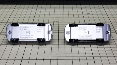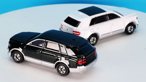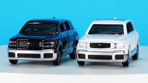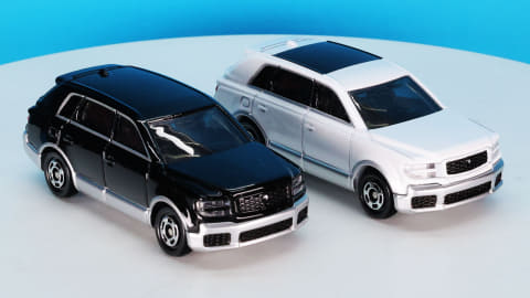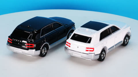 カラーリングは通常仕様がブラック・シルバー、初回特別仕様がホワイト・シルバーとなっています。実車ではそれぞれブラック・シルバーは「輪宝(りんぽう)ブラック×シルバー」、ホワイト・シルバーが「白鶴(はっかく)プレシャスホワイトパール×シルバー」という名称のカラーがあります。特別なネーミングが格式をさらに高めています。