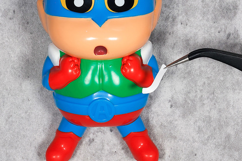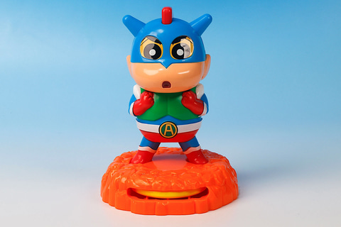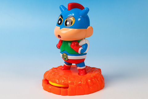 こちらの「アクションビーム!ディスクランチャ」は、しんちゃんが劇中に登場するアクション仮面のコスプレをしたときのシーンをモチーフにしたおもちゃだ。フィギュアとしての出来映えも素晴らしく、このまま机の上に飾っておきたくなるような仕上がりである。
